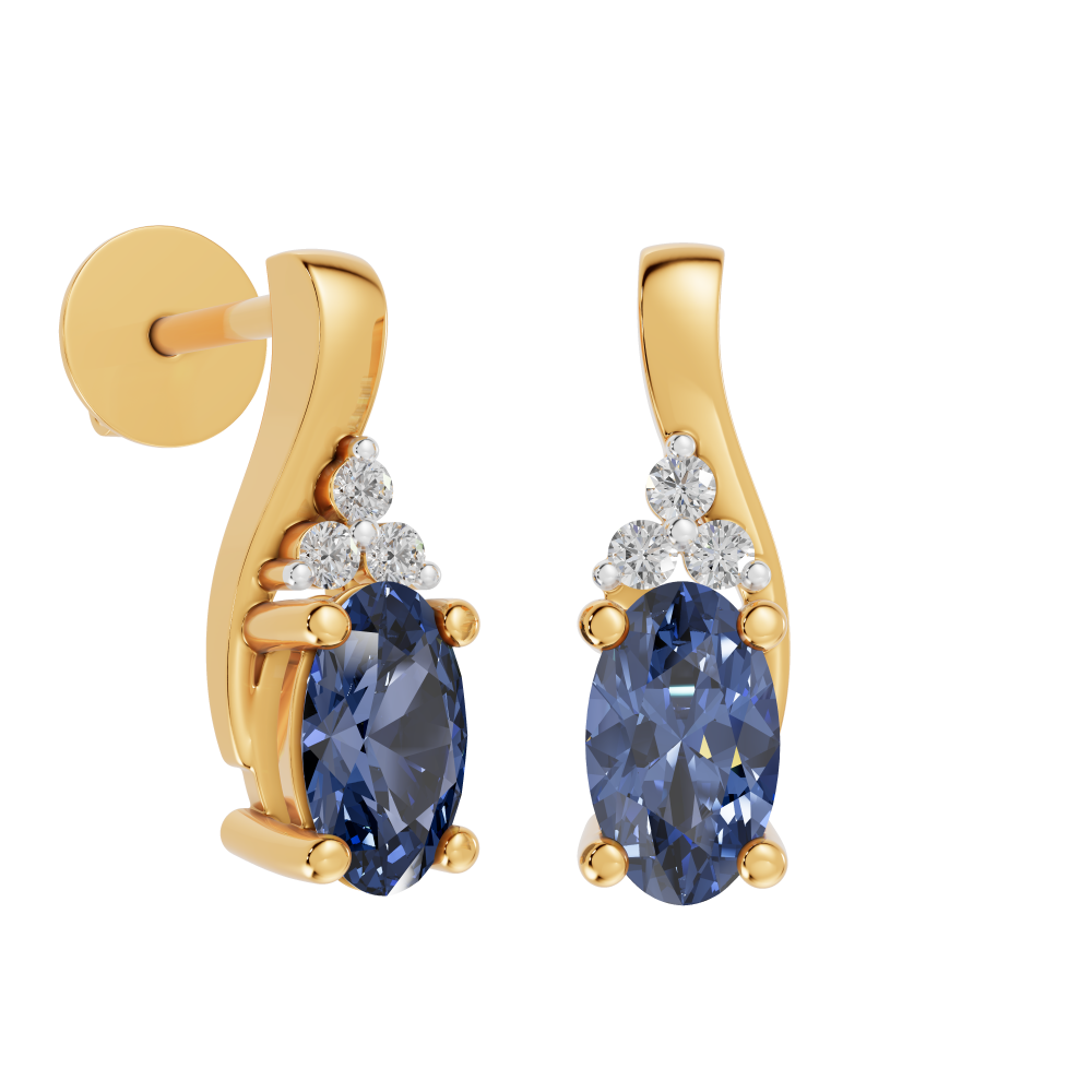 Gyémánt és kék zafír köves arany fülbevaló