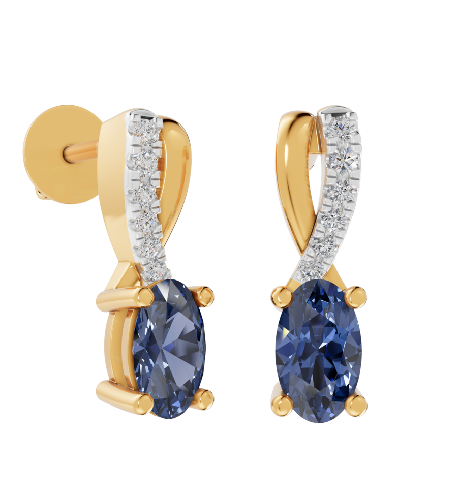 Gyémánt és zafír köves arany fülbevaló